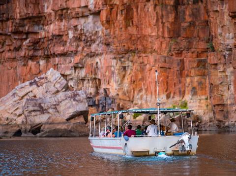 Your journey begins with a transfer from Kununurra to El Questro. On arrival, embark on a special Munbula Cruise along the Chamberlain River, guided by the Traditional Owners of El Questro Station, the Ngarinyin people. As you glide through the ancient gorge, you’ll hear stories of Country, learn about its deep cultural significance, and connect with the living heritage of the Kimberley.